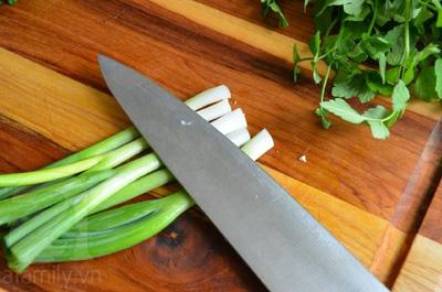 Hành lá rửa sạch để ráo nước, cắt bỏ phần đầu rễ. Sau đó cắt khúc dài vừa ăn.