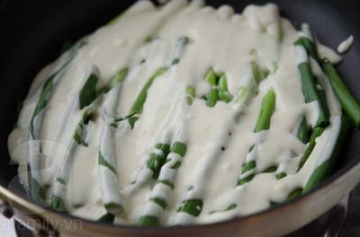 Trứng gà đánh tan, sau đó đổ 1 ít lớp trứng lên mặt bánh cho kết dính.