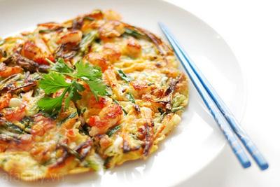 Bánh xèo kiểu Hàn sau khi thành phẩm sẽ có vỏ ngoài vàng giòn rụm, cắn vào sẽ thấy mềm bên trong cùng hải sải chín đều, giòn sực thêm vào đó là vị hành hơi cháy cháy càng làm gia tăng hương vị cho món ăn. Ngoài ra phần nước chấm với hương vị đậm đà bùi bùi thơm thơm của vừng rang càng tăng thêm độ hấp dẫn cho món ăn. Món bánh xèo này rất hợp để ăn vào bữa xế chiều và nên ăn ngay khi còn nóng bạn nhé!