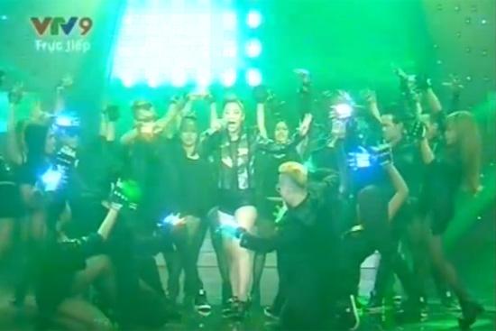 Thu Minh hết mình trong liên khúc những sáng tác cũ. Khán giả hai bên sân khấu liên tục sôi động cổ vũ hết mình cho cô