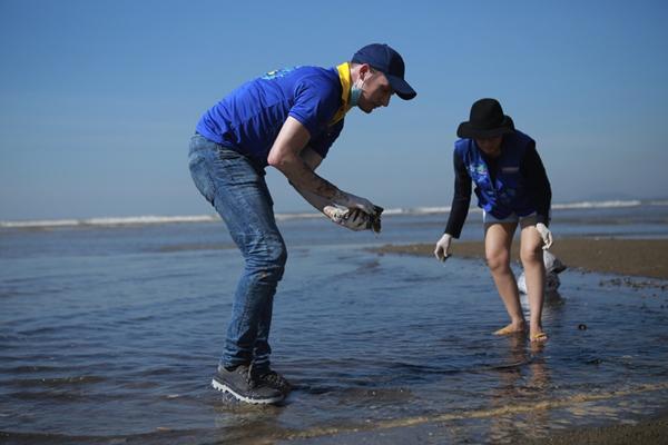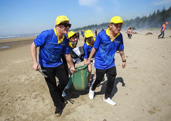 Để kịp tham gia hoạt động làm sạch biển lần này, ca sĩ Hoàng Bách vừa kết thúc show diễn tại Huế lúc 9h tối đã thuê xe đi hơn 500km suốt đêm để kịp đến Thanh Hóa vào sáng sớm ngày hôm sau.