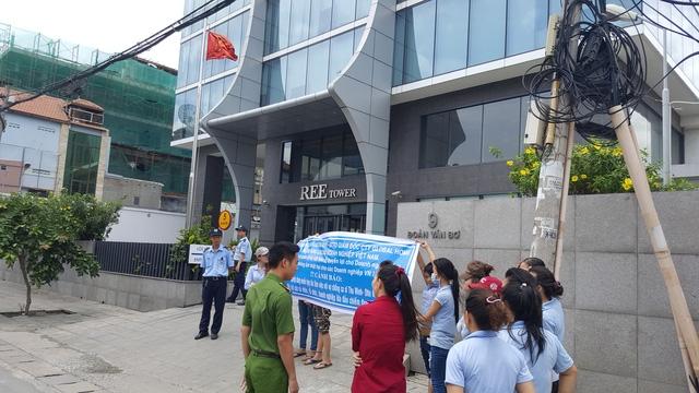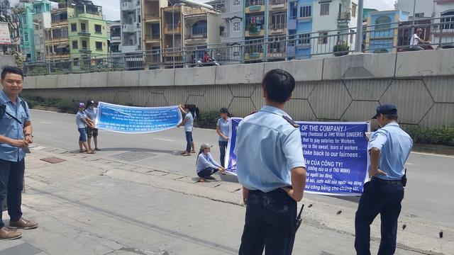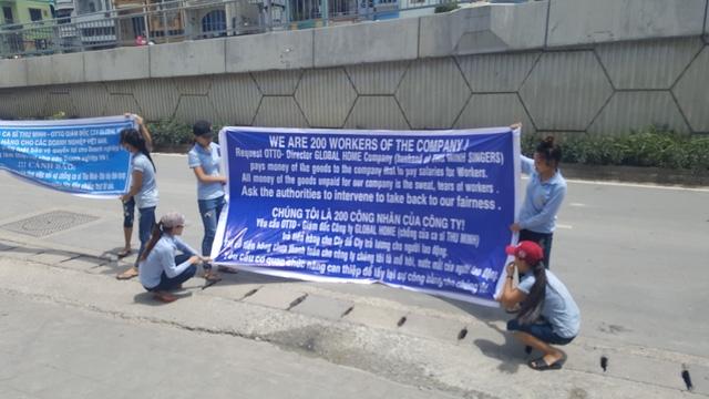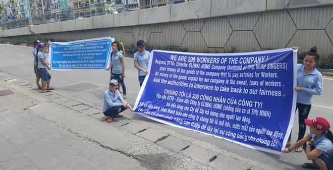 Công nhân "đội nắng" căng băng rôn kêu gọi vợ chồng Thu Minh trả nợ