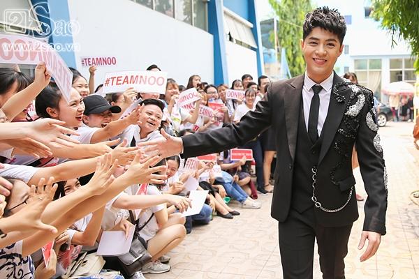 Người hâm mộ hò reo tên Noo suốt đoạn đường nam ca sĩ đi từ cổng vào chỗ ghi hình.