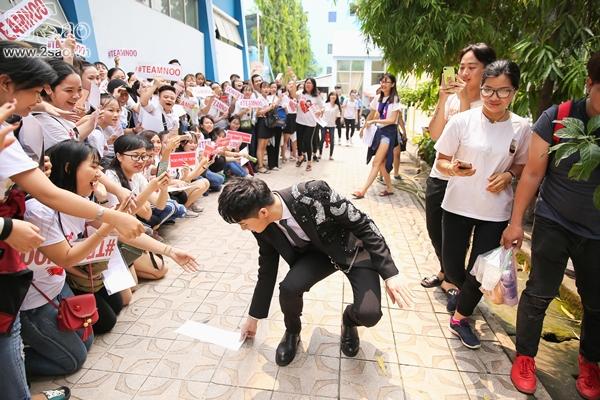 1 hành động nhỏ của Noo khiến fan nức lòng. Khi thấy banner trên tay người hâm mộ vô tình rớt xuống, nam ca sĩ không ngần ngại cúi xuống và nhặt lên, đưa lại cho fan.