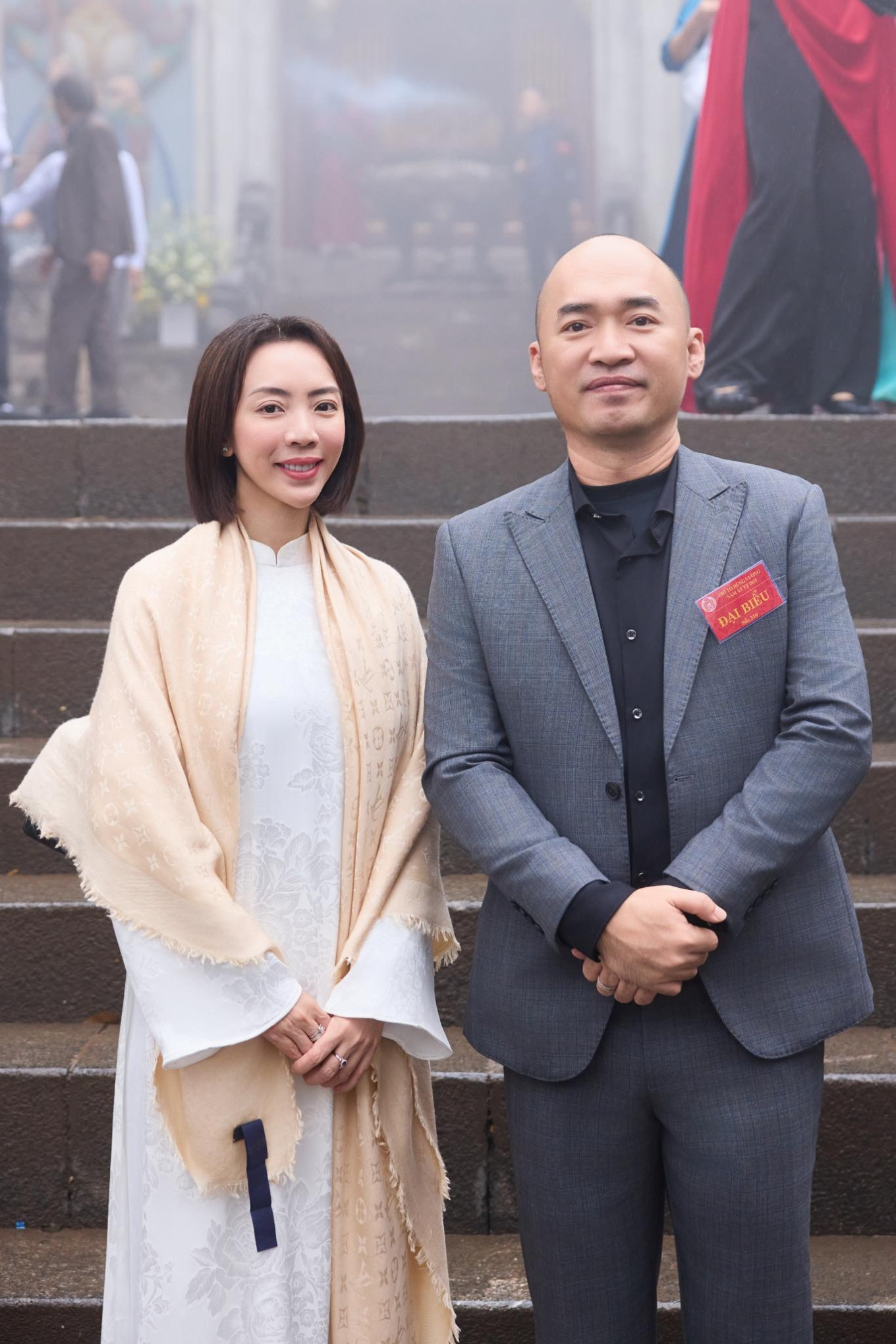 Mới đây, vợ chồng Thu Trang - Tiến Luật góp mặt trong danh sách đoàn nghệ sĩ tham gia dâng hương từ chân núi Nghĩa Lĩnh lên Đền Hùng (Phú Thọ).