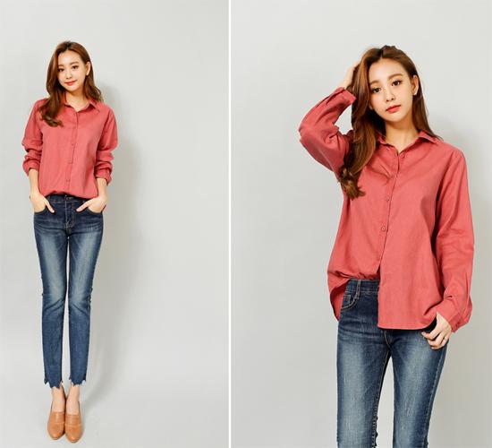 Bạn không muốn gò bó thì hãy kết thân với chiếc áo sơ mi thiết kế dáng thụng. Áo sơ mi dáng thụng màu cam sẽ giúp chị em có làn da trắng thêm đẹp ngọt ngào, dễ thương. Bạn có thể sơ vin cả chiếc áo hoặc sơ vin vạt trong vạt ngoài tùy theo sở thích.