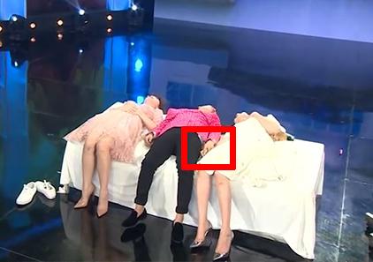 Trường Giang nắm tay Nam Em khi cả hai nằm cạnh nhau.