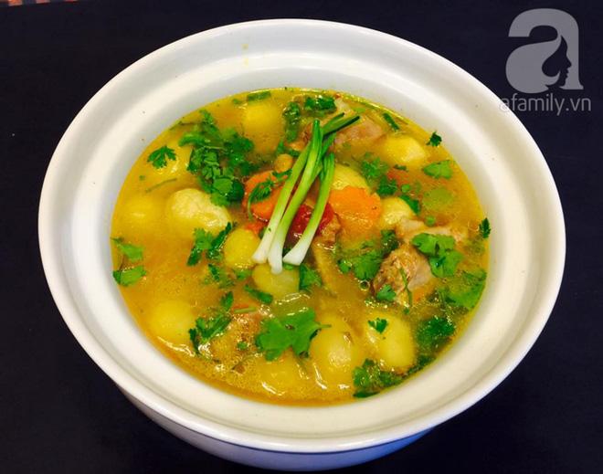 - Thêm gia vị, nước mắm vị cho vừa miệng, cho hành lá và mùi thơm đã rửa sạch cắt đoạn vào nồi sườn rồi tắt bếp.