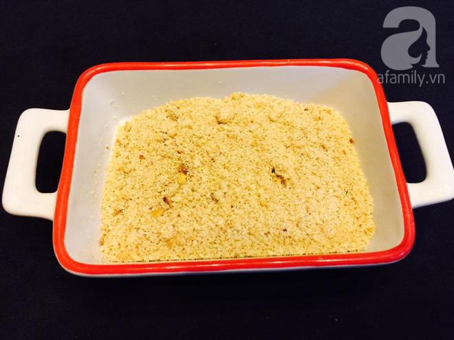 - Sau khi đổ lạc ra ủ, tranh thủ khi chảo còn nóng cho vừng vào đảσ ngay. Vừng cũng cần đảσ đều tay nhanh để không bị cháy. Vừng rất nhanh chín, vì vậy bạn chỉ đảo khi thấy hạt vừng nổ lách tách thật đều là vừng chín. Trút vừng ra bát, cho luôn muối tinh vào chảo, đảo cho khô thì đổ ra cối, giã nhỏ, mịn..