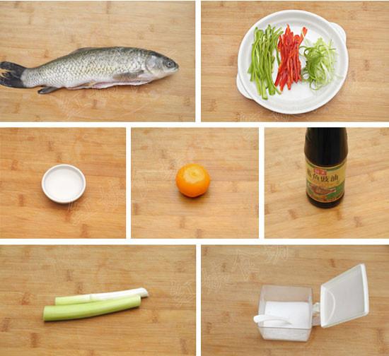 Bước 1: Chuẩn bị tất cả các nguyên liệu. Cá trắm rửa sạch, mổ bỏ ruột, khứa các đường ngang thân con cá cho gia vị ngấm và nhanh chín.