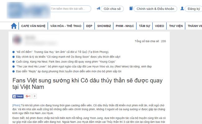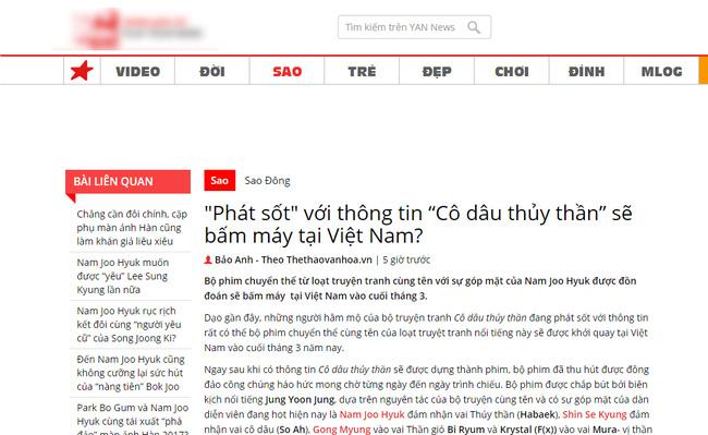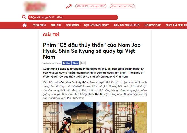 Thông tin "Cô Dâu Thủy Thần" sẽ ghi hình tại Việt Nam được nhiều trang tin tức đăng tải