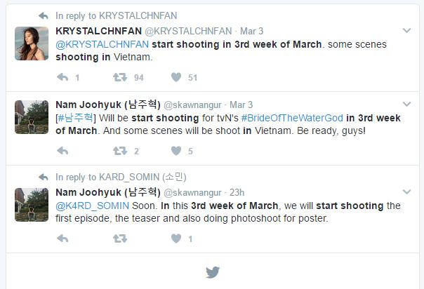 Khi kiểm tra DC Inside của Krystal và của dự án Cô Dâu Thủy Thần, chúng tôi tìm được một bài viết đăng tải các hình ảnh về vịnh Hạ Long của Việt Nam. Ngoài ra, không có thông tin nào được đề cập trong bài viết này khẳng định Việt Nam sẽ là địa điểm ghi hình chính thức của phim.