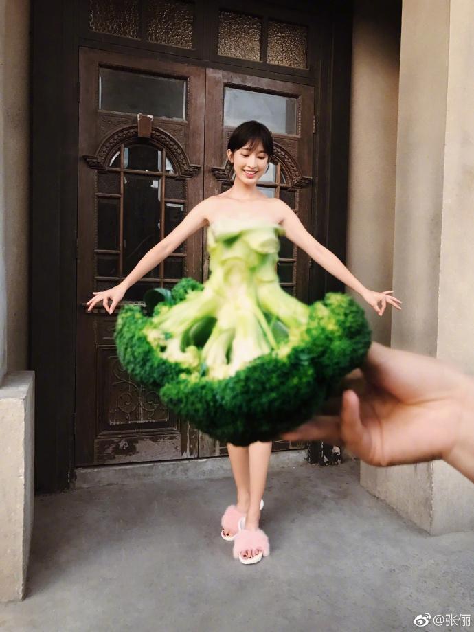 Cùng loạt biểu cảm "so deep", cô gái vô cùng xinh xắn và đáng yêu trong chiếc đầm dạ hộ màu tím làm từ bắp cải.