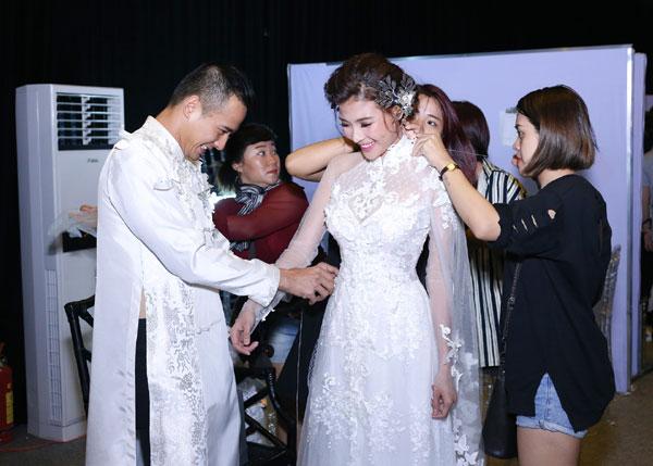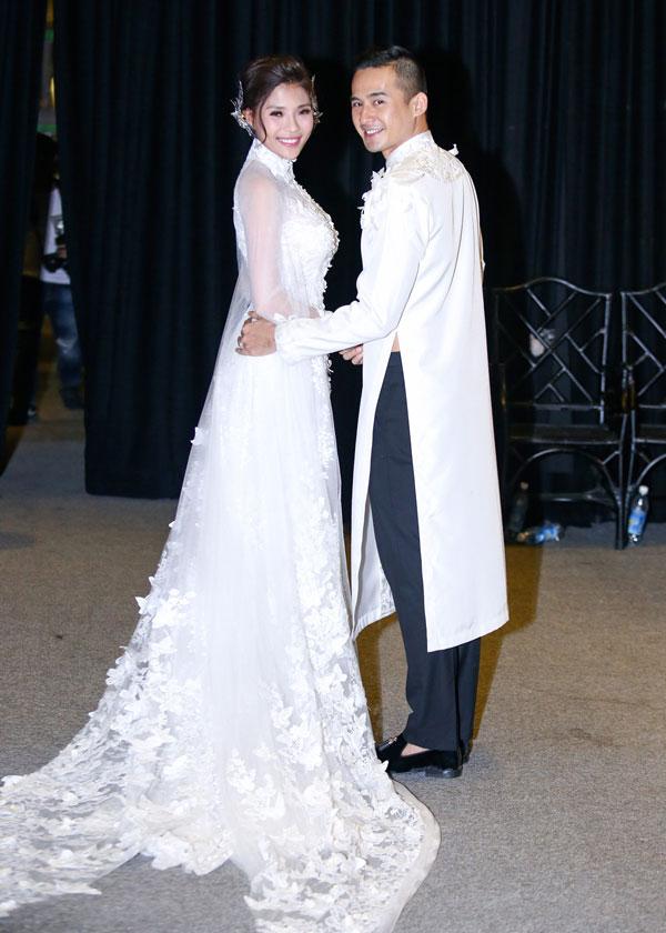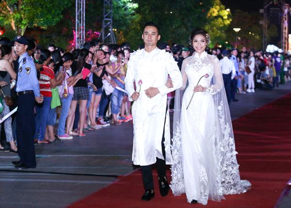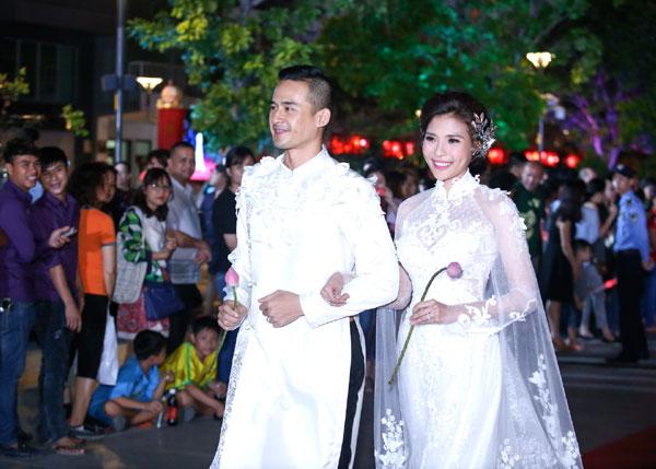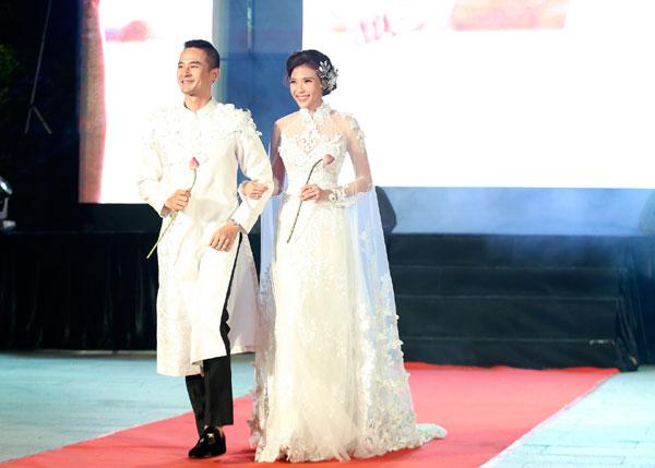 Khoác lên mình chiếc áo dài sắc trắng ngọc trai 6 tà được thiết kế cầu kỳ với chất liệu ren lưới, voan mỏng cùng họa tiết 3D tỉ mỉ, Thúy Diễm tựa như một cô công chúa bước ra từ cổ tích bên cạnh Hoàng tử Lương Thế Thành lịch lãm và phong độ. Trên nền nhạc ca khúc “Ngày chung đôi” của Văn Mai Hương, đôi vợ chồng trẻ nắm chặt tay sải bước trên sàn catwalk với chiều dài khoảng 800m với vẻ rạng ngời, hạnh phúc. Sự có mặt đặc biệt của Thúy Diễm và Lương Thế Thành nhận được sự ủng hộ nồng nhiệt từ hàng ngàn khán giả hâm mộ.