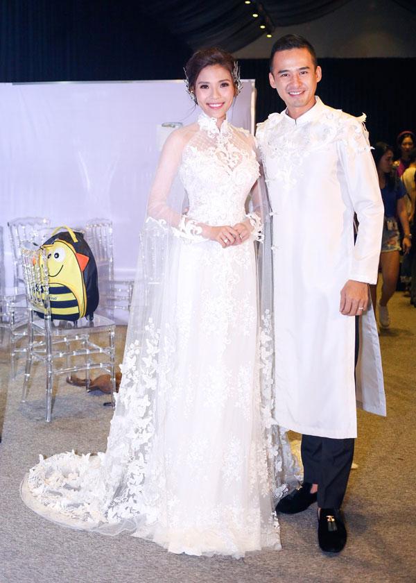 Được nhà thiết kế Phạm Đăng Anh Thư “chọn mặt gửi vàng”, vợ chồng diễn viên Thúy Diễm – Lương Thế Thành bất ngờ xuất hiện trên sàn diễn thời trang trong trang phục từ BST Áo dài cưới. Lần thứ 2 làm vedette trên sàn catwalk kể từ bộ sưu tập áo dài của NTK Đinh Văn Thơ tại Tuần lễ thời trang quốc tế Việt Nam cách đây không lâu, vợ chồng diễn viên “Trái tim hoa hồng” sải bước đầy tự tin, tỏa sáng bên cạnh dàn người mẫu chuyên nghiệp.