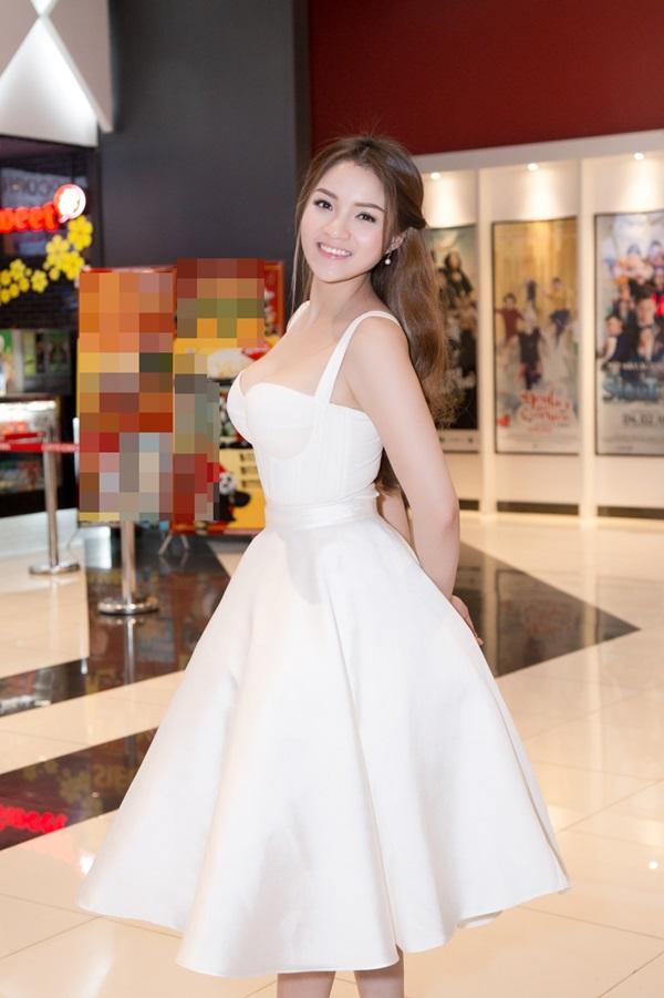 Người đẹp diện chiếc váy trắng cúp ngực, khoe vòng một “khủng”