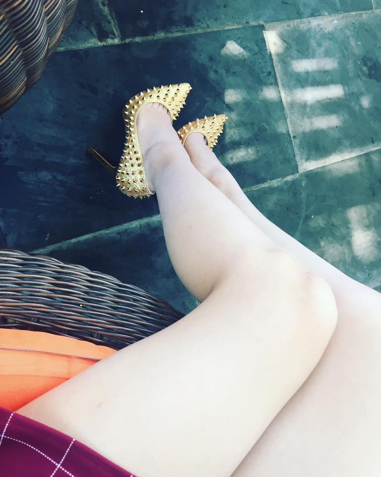 Cô nàng còn khoe mình sở hữu tới 2 đôi Valentino Rockstud thời thượng.