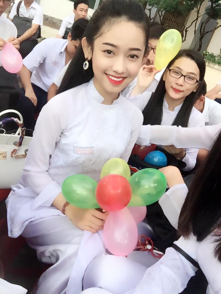 Thúy Vi dịu dàng trong tà áo trắng hôm tổng kết năm học vào cuối tháng 5 vừa qua.