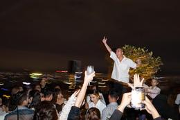 Không "leo trèo" nhưng MC sinh năm 1988 cũng rất "máu lửa", liên tục nâng ly với mọi người.