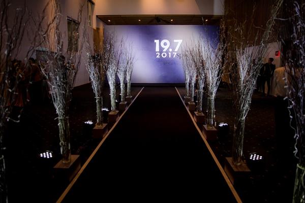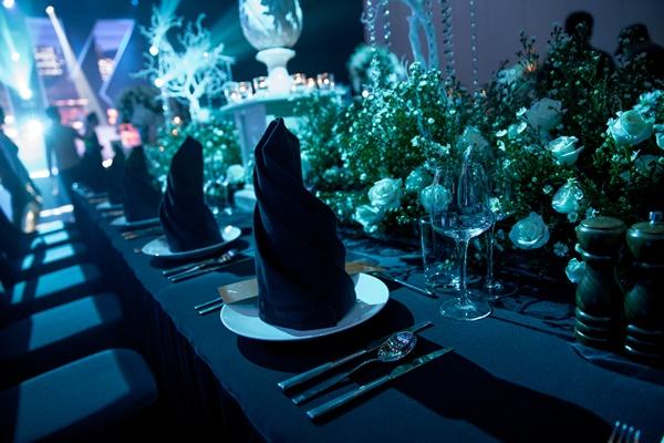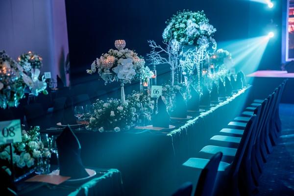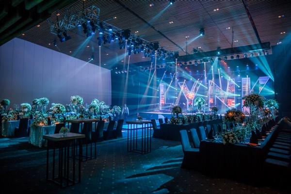 Khán phòng phủ ngập hoa trắng vô cùng thơ mộng và ngọt ngào; ánh sáng dịu nhẹ mà lung linh của hàng nghìn ngọn nến giúp không gian tiệc vừa lãng mạn lại vừa sang trọng.