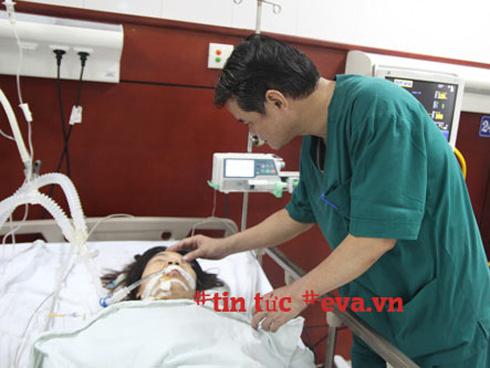 Chiều 10/4, theo ghi nhận của Zing.vn, trong phòng Hồi sức tích cực, chị Giang còn hôn mê, phải thở máy sau ca phẫu thuật vì phổi bị đâm thủng. Ngoài ra, chị còn bị nhiều vết thương ở cằm, ngực và tay.