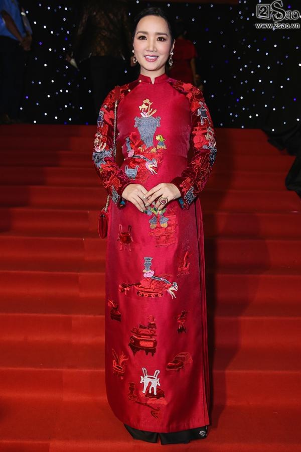 Hoa hậu Đền Hùng Giáng My "lạc quẻ" với người xung quanh khi diện áo dài truyền thống.