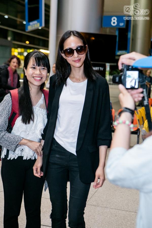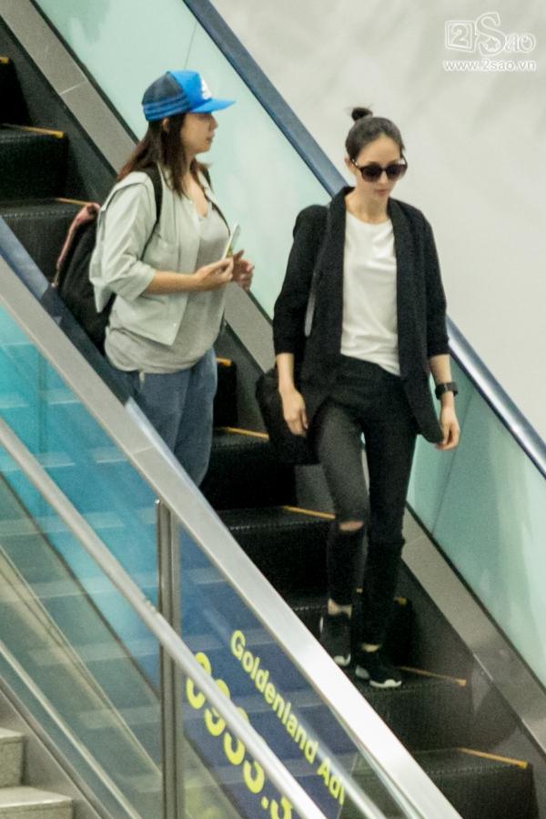 Trước đó theo lịch, Tiết Khải Kỳ sẽ đáp chuyến bay từ HongKong đến lúc 18h. Tuy nhiên, đến hơn 20h30 nữ diễn viên mới xuất hiện cùng quản lý.