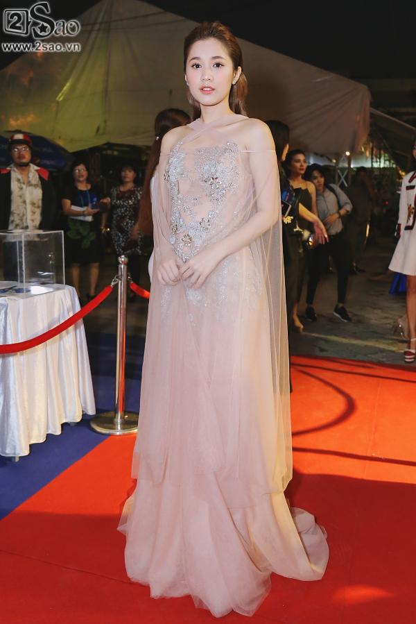 Phương Mai nổi bật với chiếc váy xanh dáng rộng