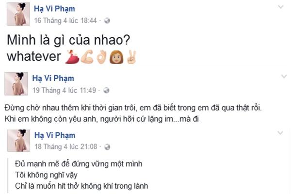 Bên cạnh đó, Hạ Vi liên tục treo những dòng trạng thái buồn bã trên mạng xã hội. Vì điều này, khán giả đinh ninh: Cặp đôi đình đám "lại" tiếp tục chia tay?