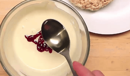 - Bạn đun chảy chocolate trắng, thêm vào 1 chút màu thực phẩm hồng và dầu ăn, khuấy đều.