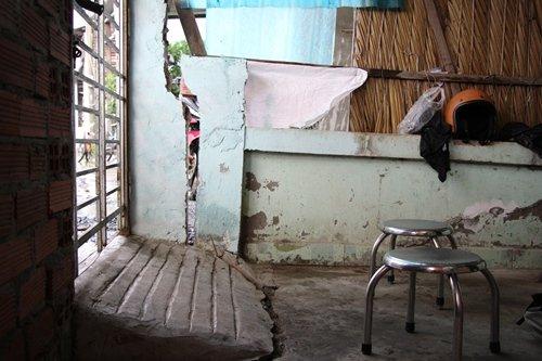 Thời gian gần đây, người dân ở xã Nhơn Đức, huyện Nhà Bè, TP HCM mất ăn mất ngủ vì mặt đường ven Rạch Tôm nứt dài đến 40 mét. Một số vết nứt còn xuất hiện ở tường rào và nền nhà dân.