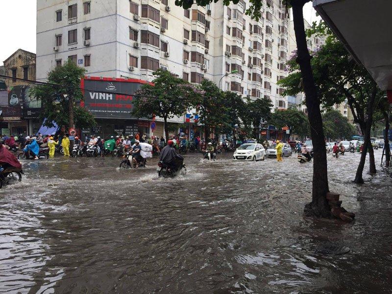 Hàng loạt phố ngập lụt sau mưa lớn ở Hà Nội