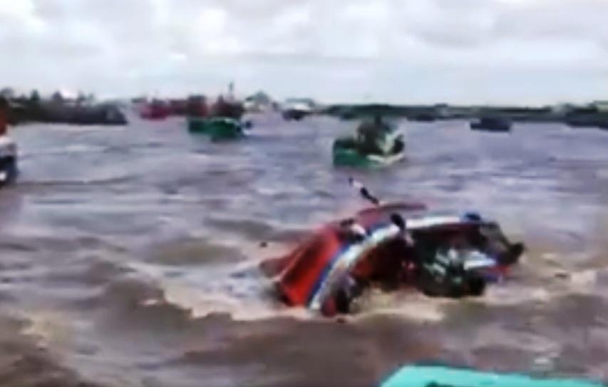 Hiện trường vụ lật tàu ở Gành Hào (Bạc Liêu).