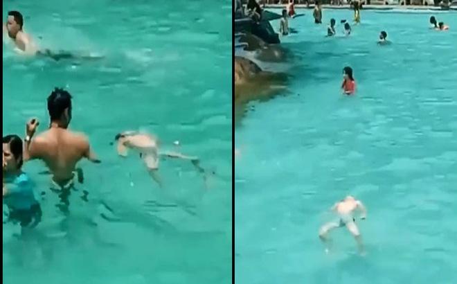 Theo hình ảnh ghi lại, một bé trai khoảng 7, 8 tuổi nổi trên mặt nước khá lâu, có biểu hiện đuối nước. Thời điểm này có khá nhiều người trong bể bơi nhưng không ai phát hiện ra điểm bất thường. Thậm chí một số người còn cho rằng cậu bé đang tập bơi.