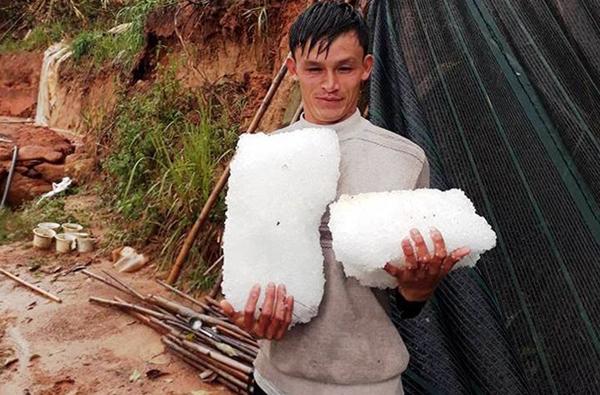 Từng tảng đá đóng băng được người dân cậy lên và di chuyển đi nơi khác. Được biết, đây là trận mưa đá thứ 3 kể từ đầu năm đến nay xuất hiện cục bộ trên địa bàn thành phố Đà Lạt.