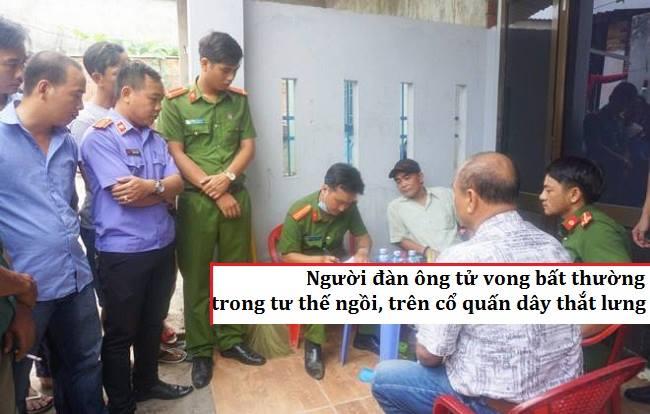 Người đàn ông tử vong trong tư thế ngồi, cổ quấn dây thắt lưng