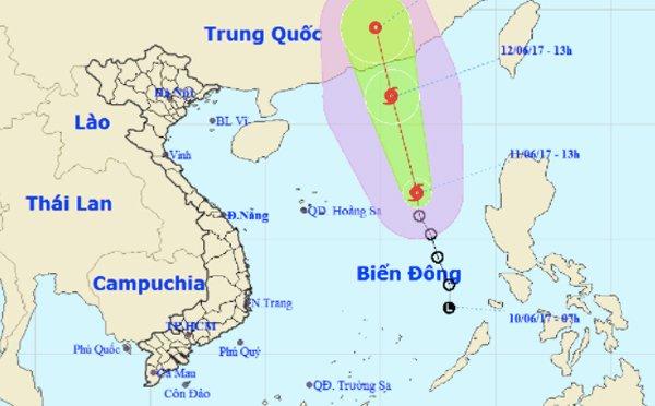 Theo thông tin từ Trung tâm Dự báo Khí tượng thủy văn Trung ương, khoảng 13h00 hôm nay (11/6), vị trí tâm bão ở vào khoảng 17,0 độ vĩ Bắc; 116,6 độ kinh Đông, cách quần đảo Hoàng Sa khoảng 450km về phía Đông.