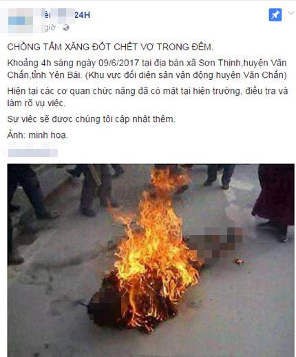 Thông tin người vợ bị tẩm xăng được chia sẻ trên mạng xã hội.