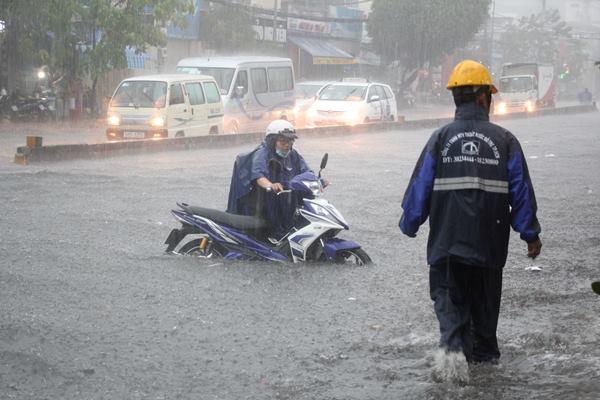Ghi nhận tại phía Nam của Thành phố, tuyến đường Huỳnh Tấn Phát (quận 7) kéo dài gần 5 km ngập lụt nặng. Nước mênh mông, sâu hơn nửa mét khiến giao thông bị rối loạn.