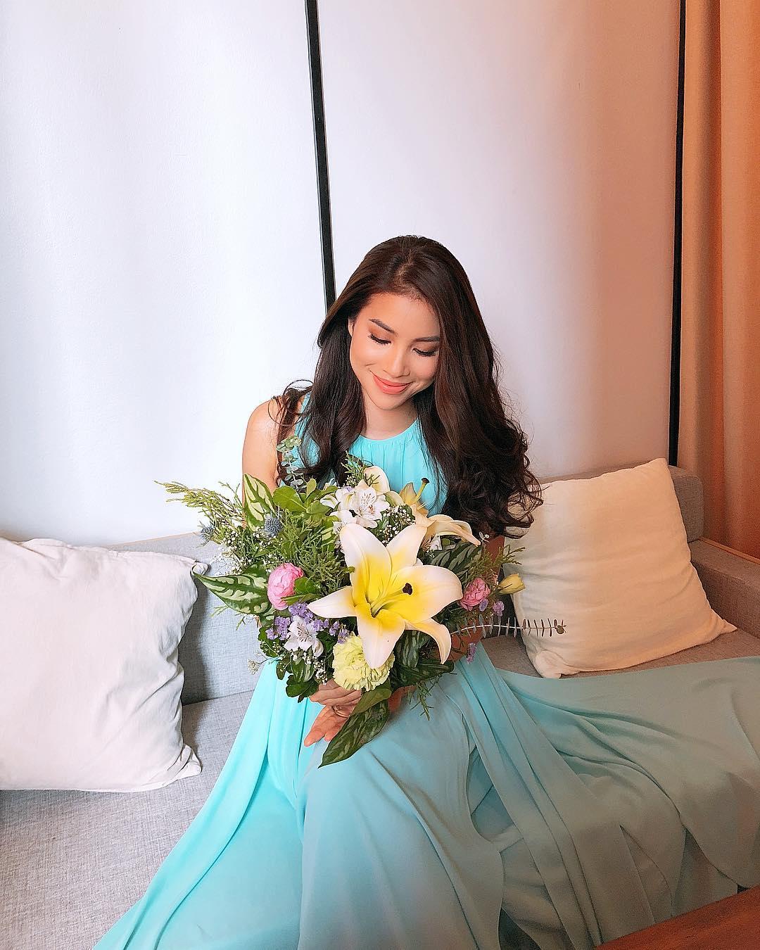 Phạm Hương thích thú đón nhận bó hoa từ người hâm mộ
