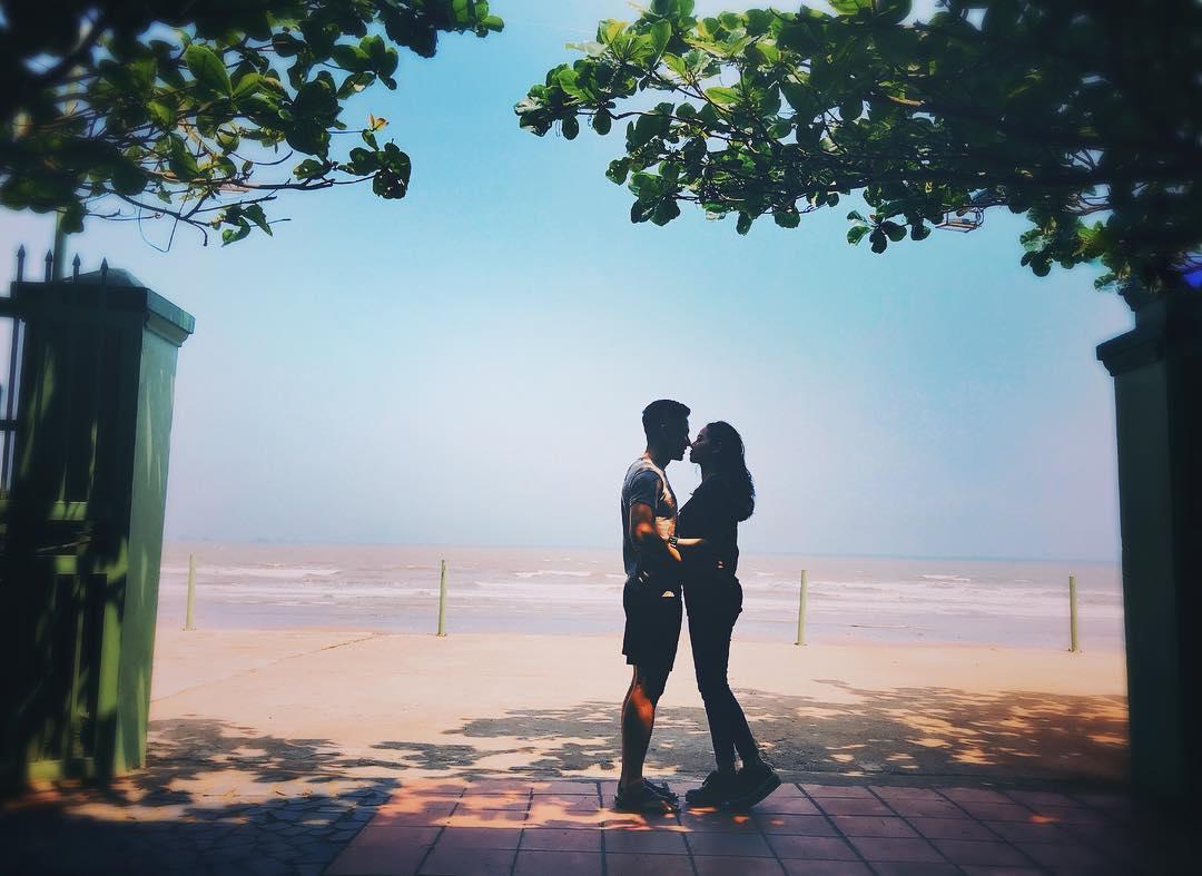 Tâm Tít khóa môi chồng ngọt ngào trước biển