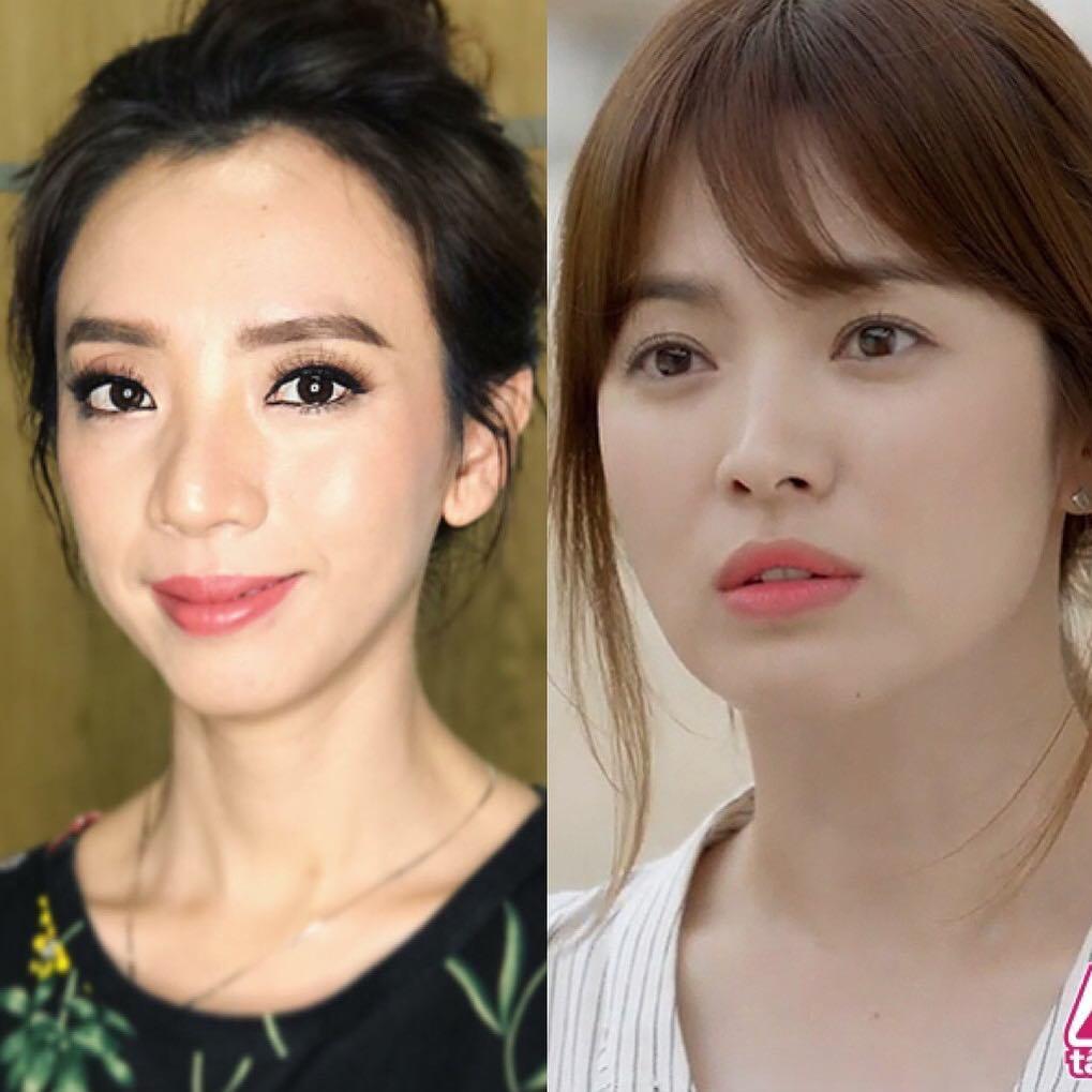 Đăng tải hình ảnh so sánh cùng nữ diễn viên Hàn Quốc Song Hye Kyo, hoa hậu hài Thu Trang mở đầu tin sao Việt với lời bật mí hóm hỉnh: "Trước khi qua Hàn và sau khi qua Hàn".