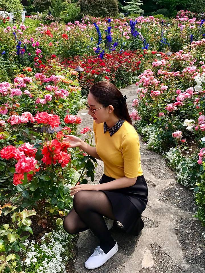 Á hậu Ngô Trà My thư giãn ngắm hoa