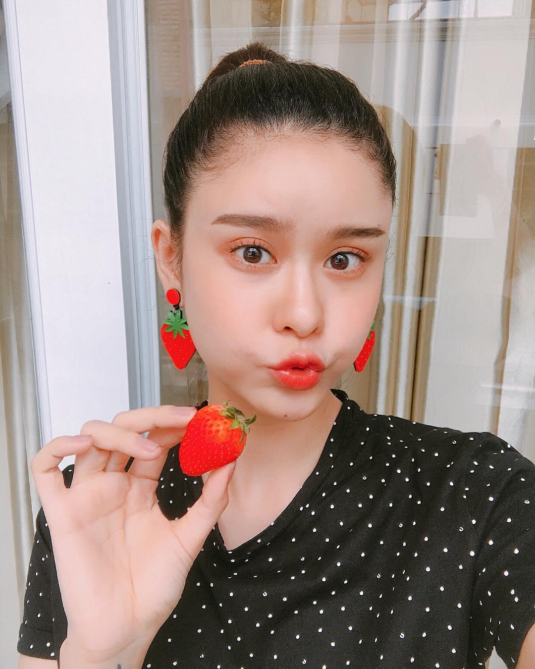 Trương Quỳnh Anh thích thú khoe dâu tây
