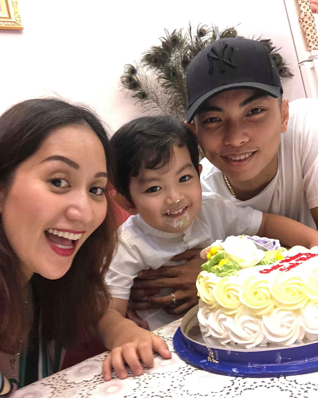 Con trai Khánh Thi và Phan Hiển tinh nghịch bên chiếc bánh Gato