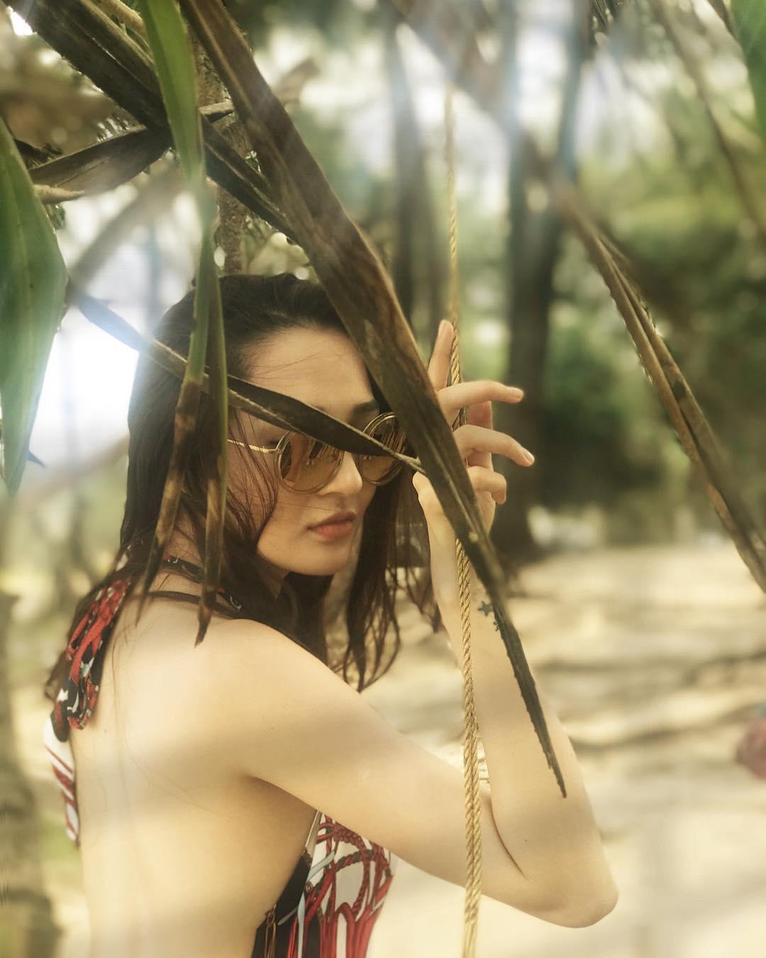 Quỳnh Nga phô diễn hình thể: "Thầu hết bãi biển... bởi giữa trưa nắng, chẳng ai ra biển như mình "