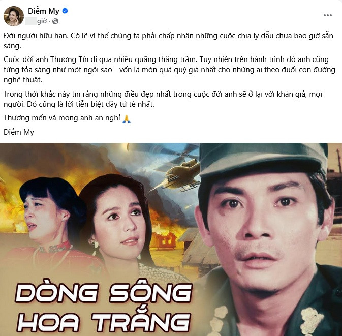 Trên trang cá nhân, diễn viên Diễm My chia sẻ xót xa trước sự ra đi của nam diễn viên đình đám một thời: "Đời người hữu hạn. Có lẽ vì thế chúng ta phải chấp nhận những cuộc chia ly dẫu chưa bao giờ sẵn sàng.