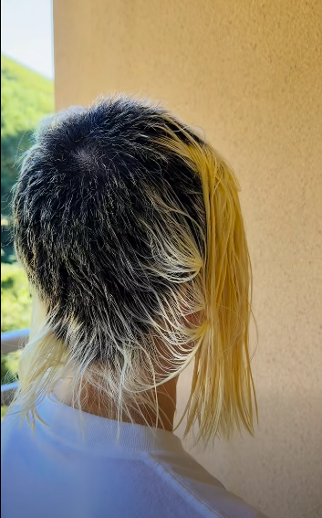 Theo như hình ảnh được nữ DJ chia sẻ, mái tóc của cô ngày càng ngắn và lởm chởm hơn so với lúc mới xảy ra sự cố, cho thấy tình trạng tóc không hề đỡ hơn mà còn ngày càng xuống cấp. Không những vậy, vùng đầu của nữ DJ loang lổ 2 màu đen - vàng trông cực kì mất thẩm mỹ.