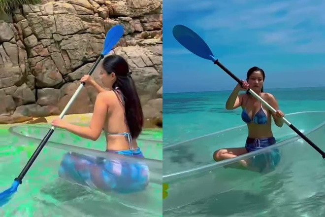 Đây là lần đầu tiên dân mạng được thấy bạn gái NSND Việt Anh mặc áo tắm kể từ sau khi trùng tu vòng 1.