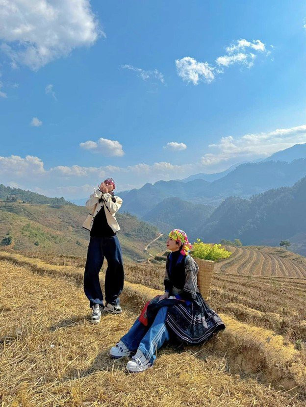 Khi Diệp Lâm Anh đứng tạo dáng chụp ảnh, Phạm Kiên đứng từ xa nở nụ cười say mê ngắm người đẹp. Dù chỉ là một khoảnh khắc ngắn ngủi nhưng có thể thấy rõ tình cảm ngọt ngào giữa hai người.